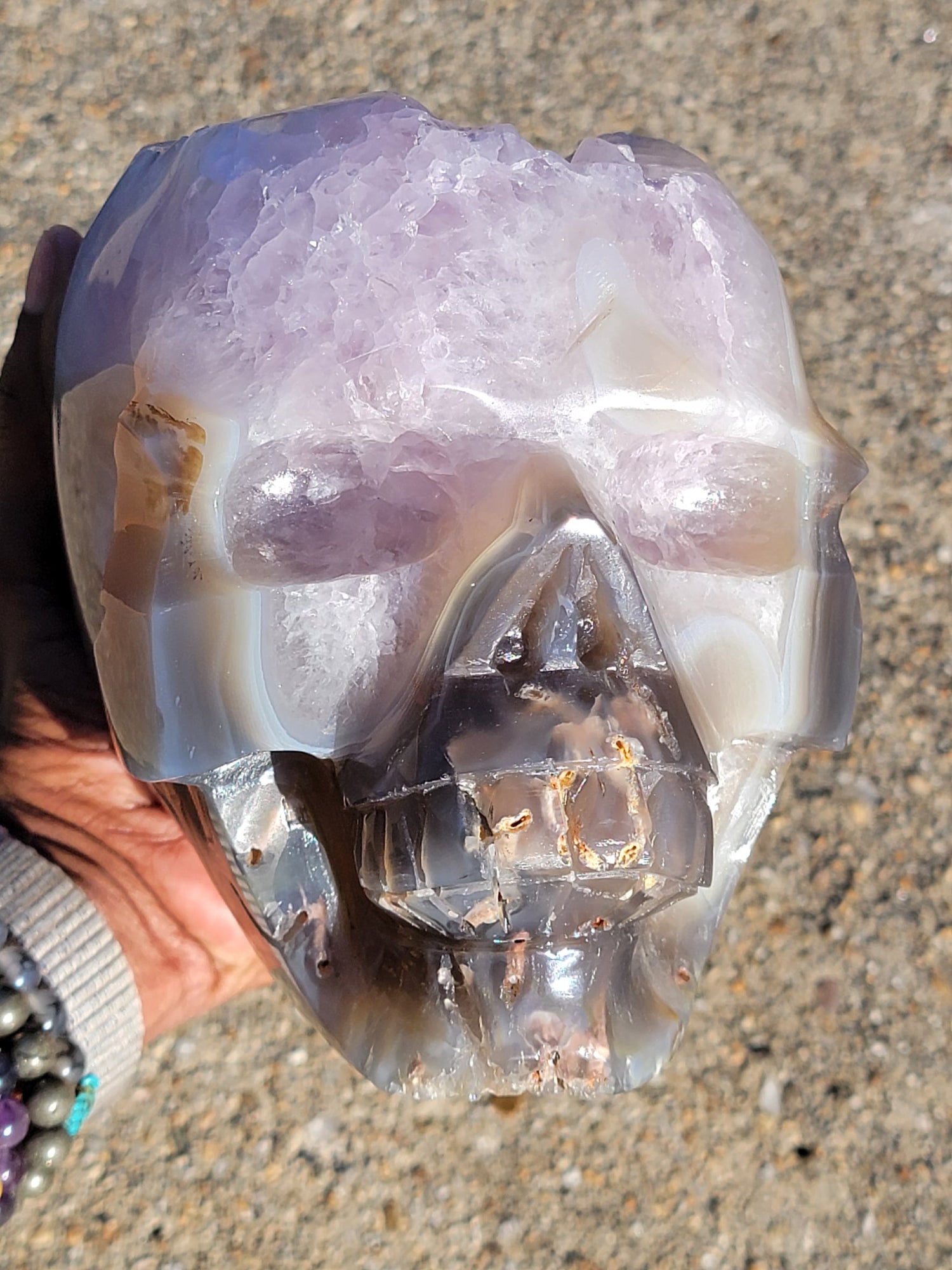 Agate Skull With Amethyst Druzy