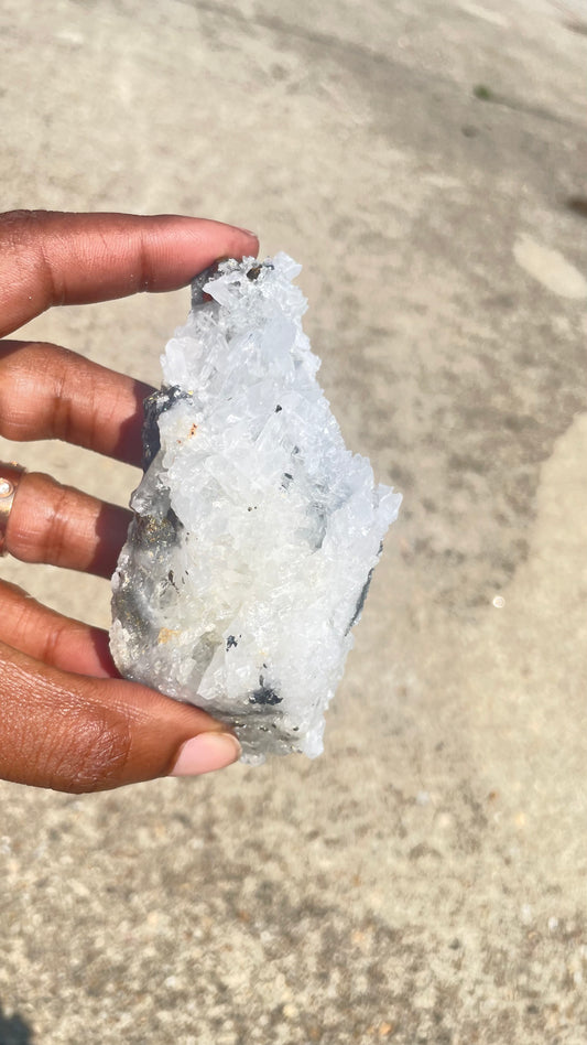 Chrysanthemum Quartz with Pyrite and Black Tourmaline