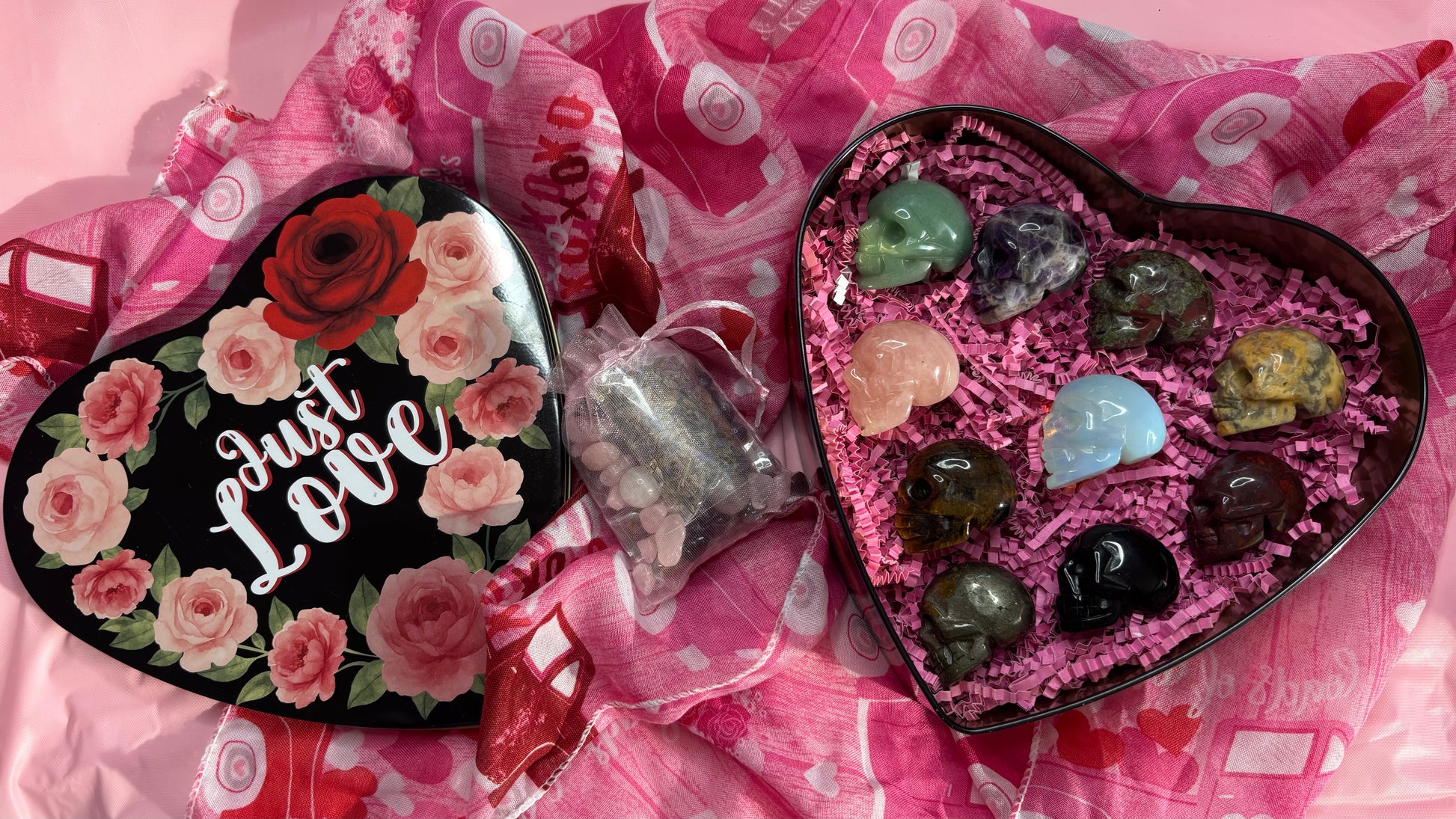 Each bundle pack included the crystals and/or spiritual tools pictured along with a mini bag of our “Valentines Day Mini Crystal Confetti” which consists of rose quartz and amethyst crystal chips, rose petals, lavender and mini crystal trinkets.