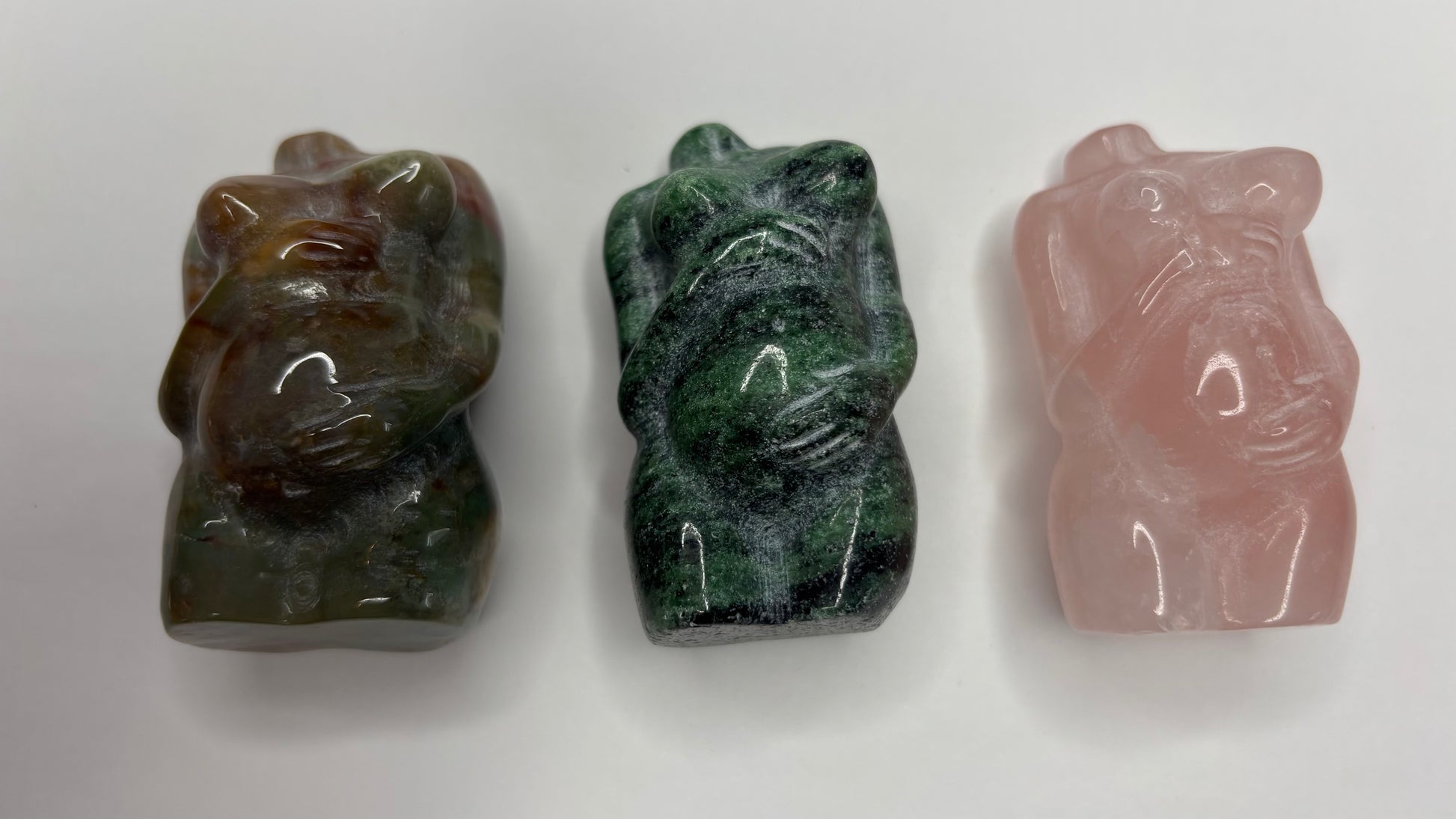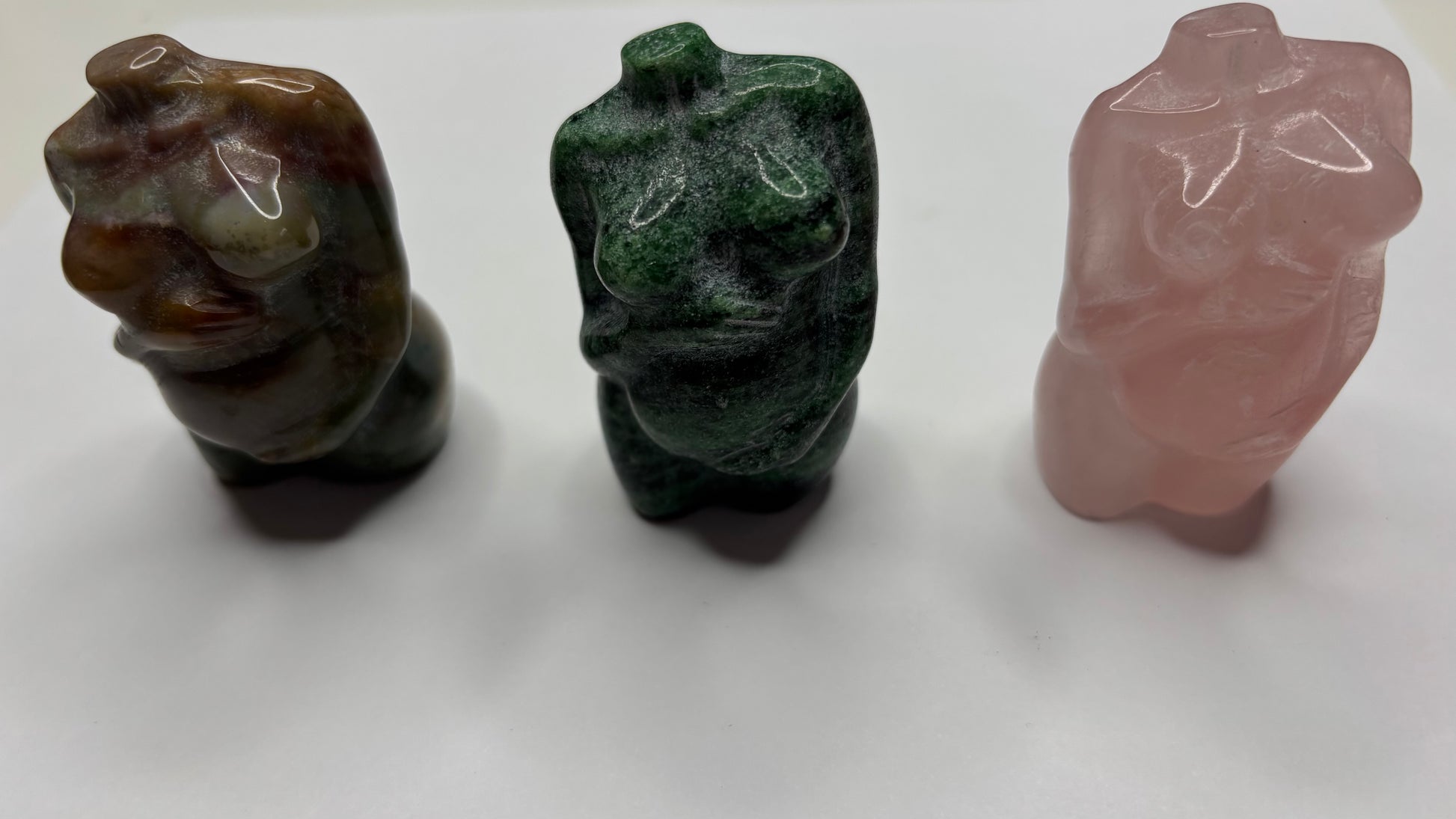 Bundle comes with Ocean Jasper, Ruby Zoisite, and Rose Quartz pregnant goddess body carving.