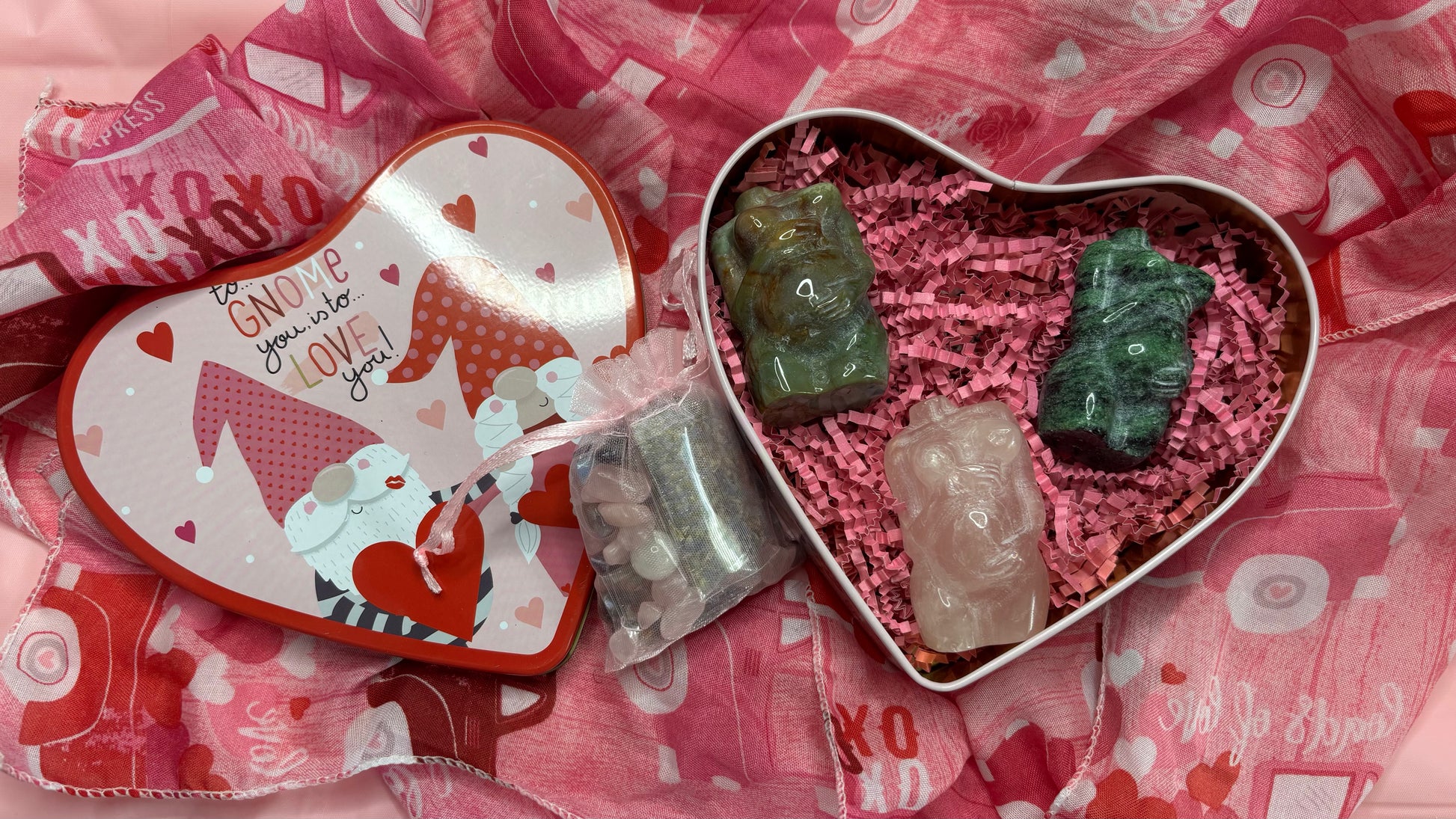 Each bundle pack included the crystals and/or spiritual tools pictured along with a mini bag of our “Valentines Day Mini Crystal Confetti” which consists of rose quartz and amethyst crystal chips, rose petals, lavender and mini crystal trinkets.