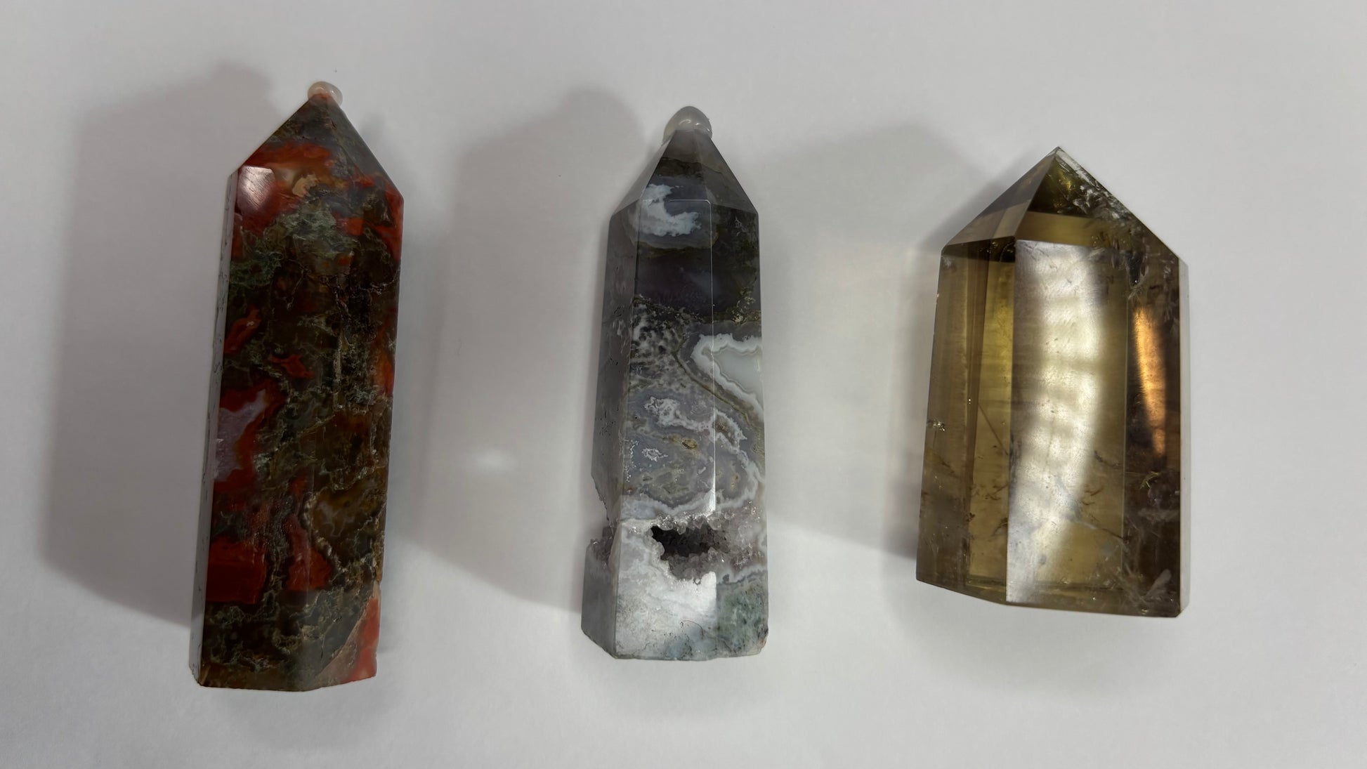 Bundle B: Carnelian + Moss Agate Tower, Druzy Moss Agate Tower, and Citrine Tower