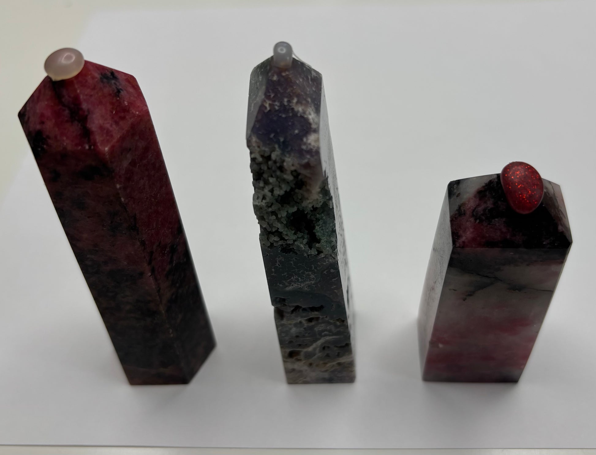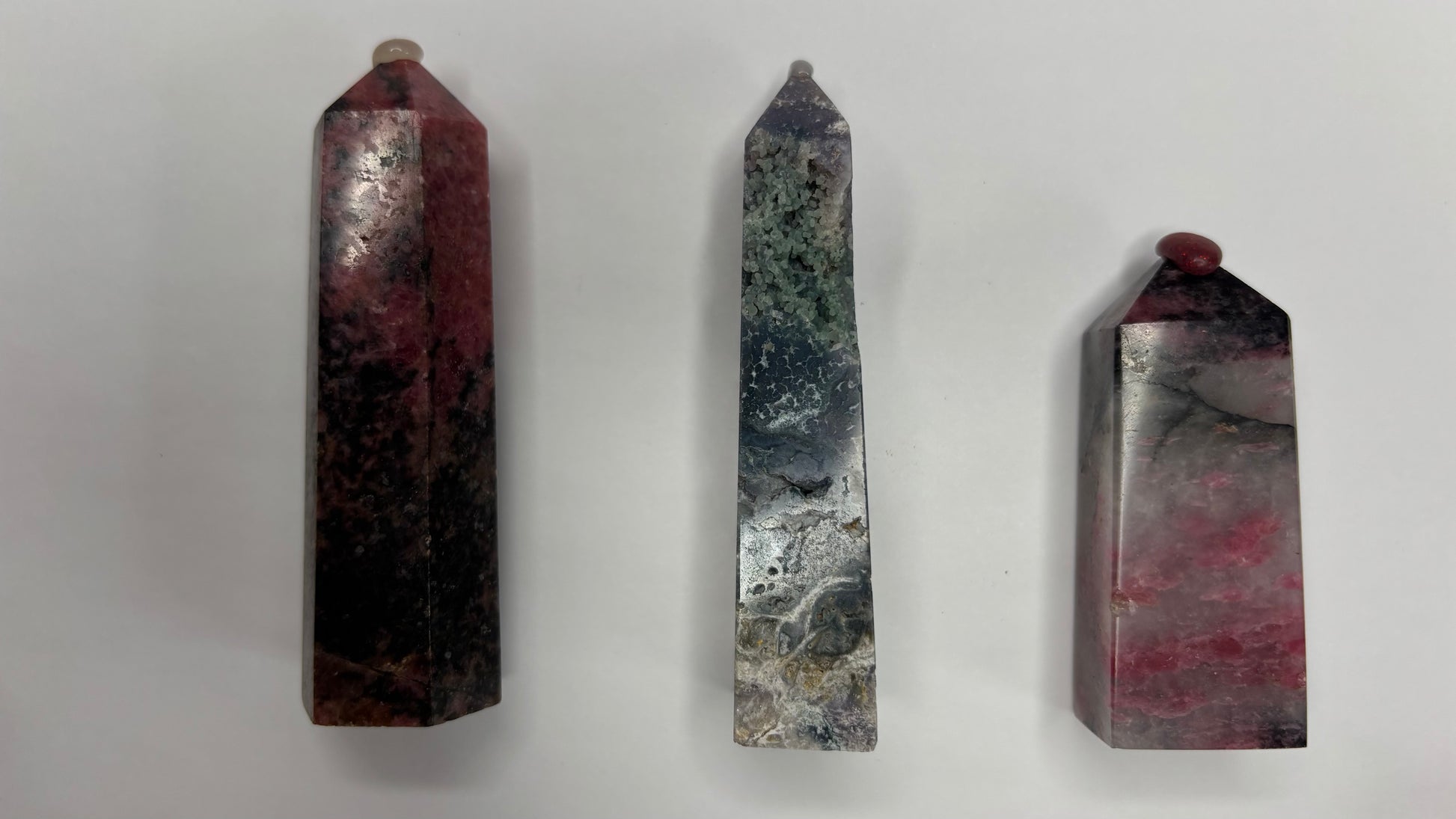 Bundle A: Rhodonite Tower, Grape Agate Tower, and a Pink Tourmaline Tower.